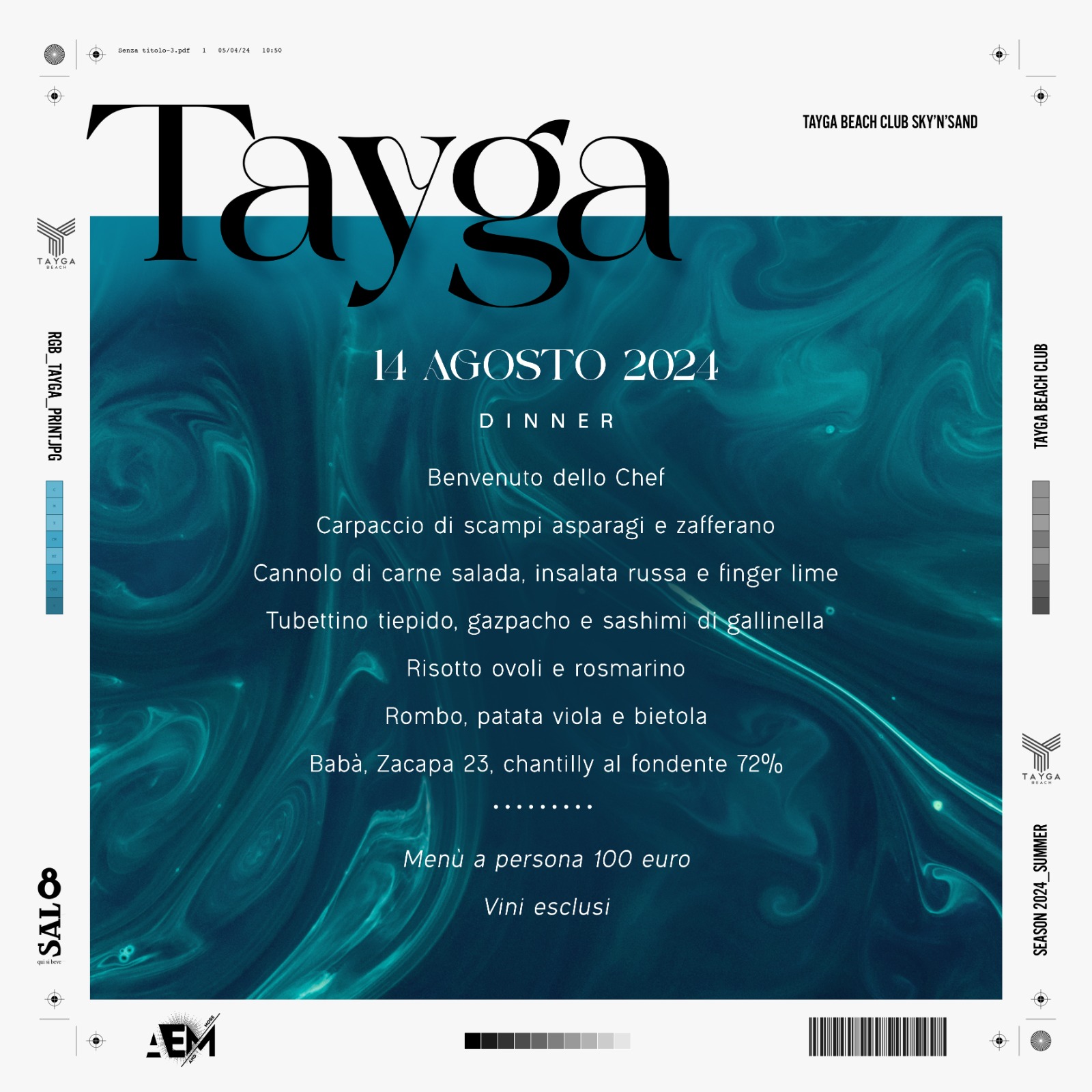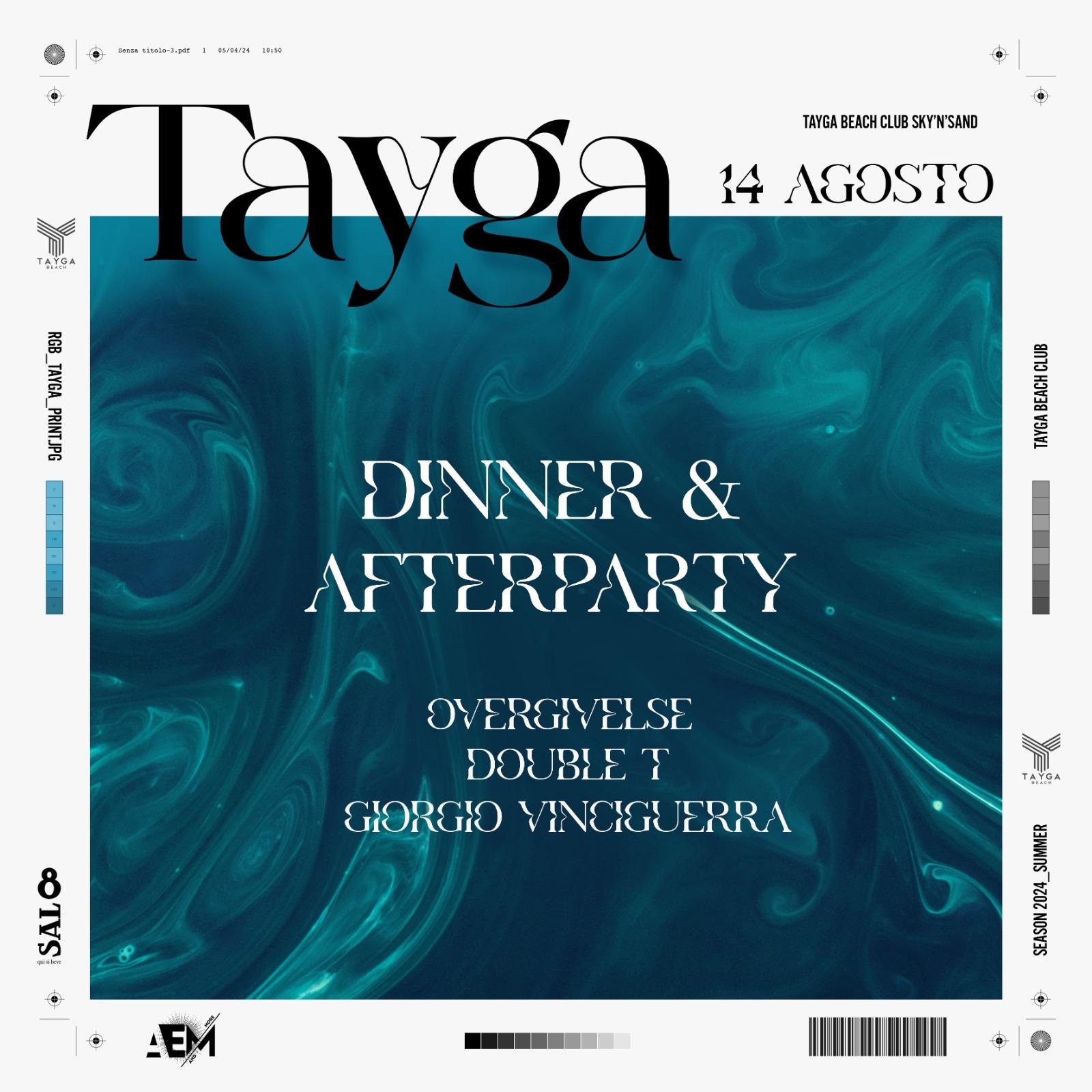 La cena nella splendida terrazza ristorante e a seguire l’after party da mezzanotte con OVERGIVELSE e i nostri resident Double T e Giorgio Vinciguerra.